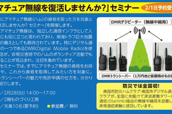 過去にアマチュア無線(ハム)の資格を取った方を対象とした「復活しませんか? セミナー」を開催します。 現在アマチュア無線は、独立した通信インフラとして …