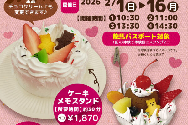 【開催時間】❶10:30 ❷11:00 ❸13:30 ❹14:30 【龍馬パスポート対象】1回の体験で体験欄にスタンプ2コ クリームを絞ってフルーツな …