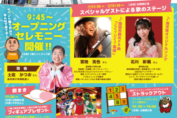 《イベントスケジュール》 09:45~ オープニングセレモニー/会場:エントランス前 10:00~ 施設オープン 10:30~ ゴメンジャーショー(1 …