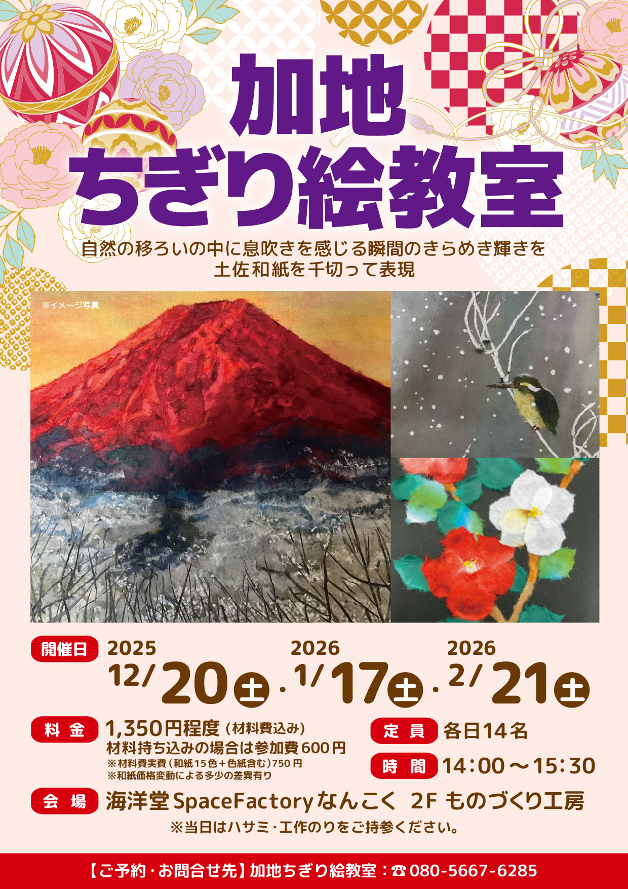 ※材料費実費(和紙15色➕色紙含む)750円
